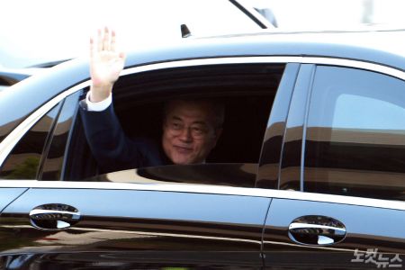 문재인 대통령이 '2018 남북정상회담'을 위해 27일 오전 8시 청와대를 떠나 판문점으로 출발했다.