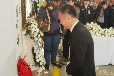 지난 6개월간 고인과 함께 근무한 노인수 소방위도 벌개진 얼굴로 제단에 헌화한 뒤 입술을 깨물며 울음을 참았다.