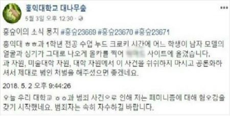 홍익대 회화과 크로키 수업에서 남성 누드모델의 사진이 몰래 찍혀 인터넷상에 올라온 사건과 관련해 경찰이 관계자들을 소환하는 등 수사를 진행하고 있다.