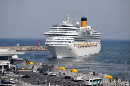 11일 오전 7시 40분쯤 승객 2380명을 태운 11만 4천 톤급 대형 크루즈 '코스타 세레나(Costa Serena)'호가 속초항에 모습을 드러냈다.