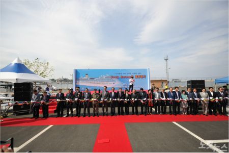 입·출항 행사는 크루즈 취항 축하 감사패와 꽃다발 전달과 시립풍물단, 초청 가수 공연, 테이프 커팅 등의 순서로 진행됐다.