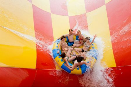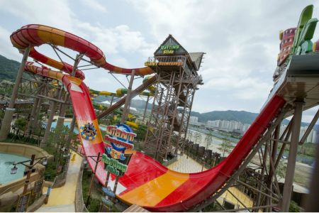 스릴을 즐기는 강심장이라면 롯데워터파크의 인기 야외 라이드 시설물 '자이언트 부메랑고'와 '레이싱 슬라이드'는 필수 체험 코스다.