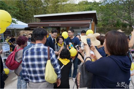 노무현 전 대통령의 마지막 비서관이었던 그는 이날 선거일정을 하루 접고 봉하마을 곳곳을 누비며 추모객 맞이에 나섰다.