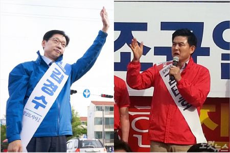 더불어민주당 김경수, 자유한국당 김태호 경남지사 후보가 공식 선거 운동 첫날 열띤 유세전 못지않게 장외 공방도 치열해지고 있다.