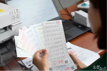 6·13 전국동시지방선거 및 국회의원 재·보궐선거 사전투표를 하루 앞둔 7일 오후 서울 용산구 서울역에 마련된 사전투표소에서 선관위 관계자들이 막바지 점검을 하고 있다. (사진=이한형 기자)