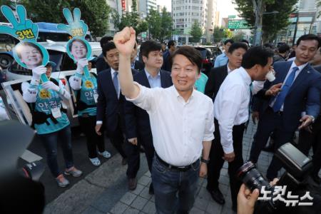 바른미래당 안철수 서울시장 후보가 6.13 지방선거를 하루 앞둔 12일 오후 서울 종로구 탑골공원에서 열린 총집결 유세에 참석하며 손을 들어보이고 있다.