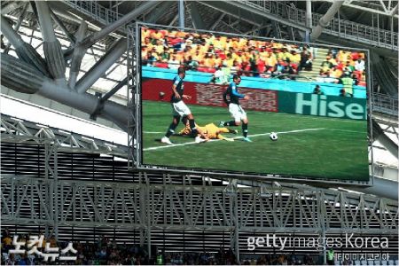 프랑스-호주전에서 나온 VAR 장면. (사진=노컷뉴스/gettyimages)