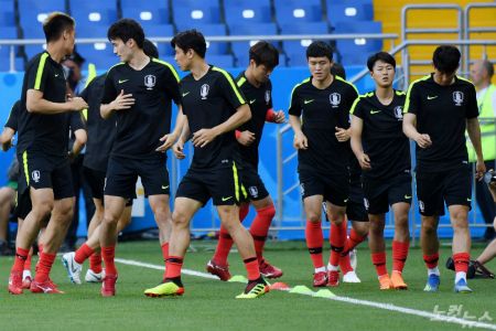 한국은 멕시코에 앞서 공식 훈련을 진행했다. 1차전의 여파로 선수들의 분위기는 그 어느 때보다 진지했다. 훈련장에서 미소를 짓는 선수를 찾아보기 힘들었다.