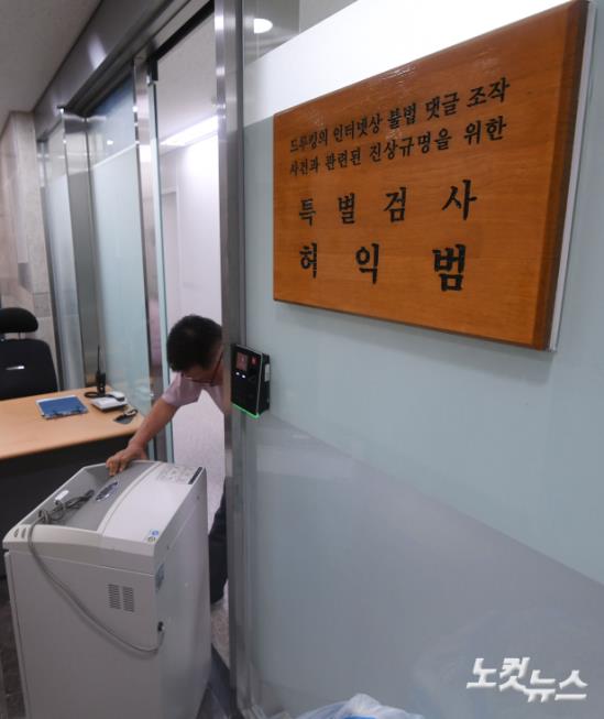 드루킹 댓글조작 의혹 특별검사팀 수사 개시를 하루 앞두고 26일 오후 서울 서초구 특검 사무실에 문서 파쇄기와 복합기가 들어가고 있다.