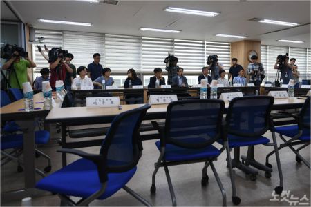 19일 오후 서울 마포구 서울지방노동청 서부지청에서 열린 최저임금위원회 전체회의에서 불참을 선언한 근로자위원들의 빈자리가 보이고 있다. (사진=이한형 기자)