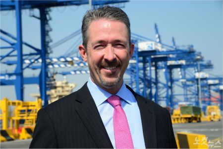 그는 부산신항의 5개 운영사 가운데 5부두를 운영하는 BNCT 최고경영자인 존 엘리어트 사장이다,