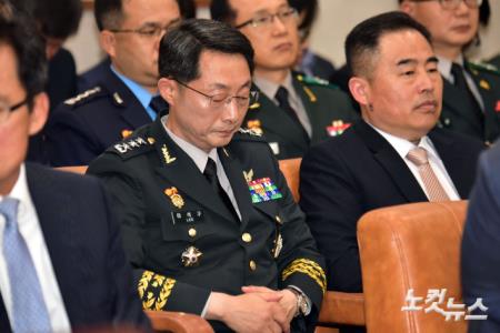 이석구 국군기무사령관이 20일 국회에서 열린 법제사법위원회 전체회의 군사법원, 감사원 업무보고에 출석해 고개를 숙이고 생각에 잠겨있다.