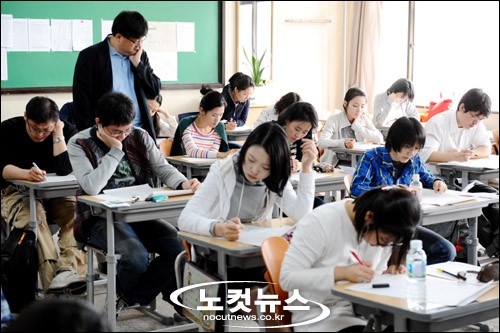 27일 오후 서울 양천구 양정고등학교에서 방송전문인을 꿈꾸는 젊은이들이 CBS 2008 신입사원 공개 채용에 응시, 2차 필기시험을 치르고 있다.