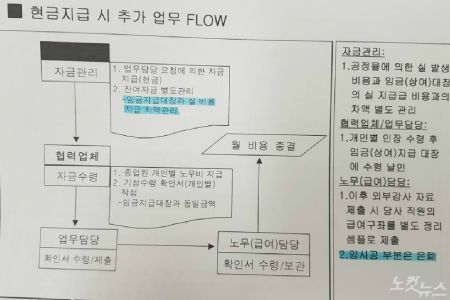 이 같은 꼼수 지급 흔적을 없애기 위해 한진중공업은 임시공의 원래 소속 하청업체 대표를 통해 현금으로 임금을 전달한 것으로 알려졌다.