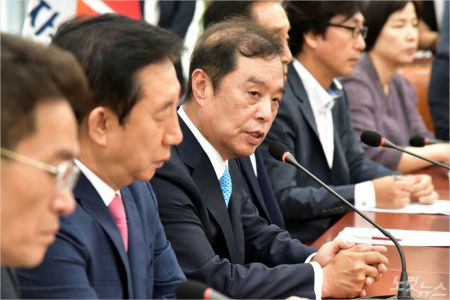 자유한국당 김병준 비대위원장이 25일 오전 국회에서 열린 비상대책위원회의 첫 회의에서 발언을 하고 있다. (사진=윤창원 기자)