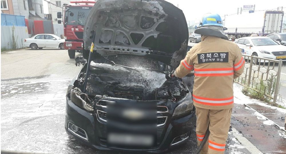 6일 오후 2시 30분쯤 충북 청주시 강내면의 한 도로를 달리던 A(28)씨의 승용차에서 원인을 알 수 없는 불이 났다.