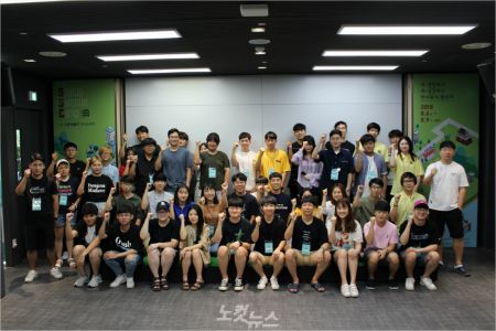 UNIST는 6일부터 9일까지 '아이디어에 기업현장을 더하면?!'을 주제로 스타트업 여름 캠프(Startup Summer Camp)를 진행한다. 캠프 참가 학생들이 입소 기념촬영을 하고 있다.(사진 = UNIST 제공)
