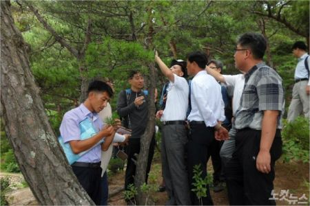 남북은 8일 금강산 지역에서 산림병해충 현황을 공동으로 점검했다.