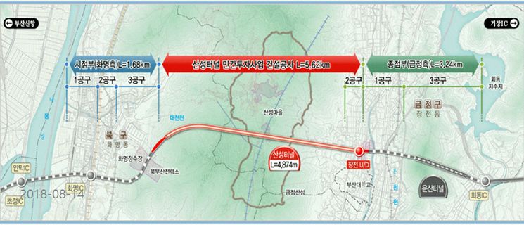 부산의 동서축을 연결하는 부산외부순환도로망의 핵심 구간인 산성터널이 9월 개통한다. (자료=부산산성터널㈜ 제공)