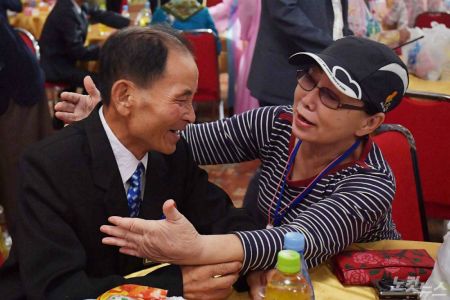 북측 언니(배순복·87)와 여동생(배순영·75)을 만난 배순희(82) 할머니는 북측이 선물한 과자의 껍질을 까서 나눠 먹었다. 배 할머니는 "70여년만에 만났으니 못다한 얘기를 더 나누고 싶다"며 "어제, 오늘 한 얘기도 또 하고 싶다"고 간절함을 드러냈다.