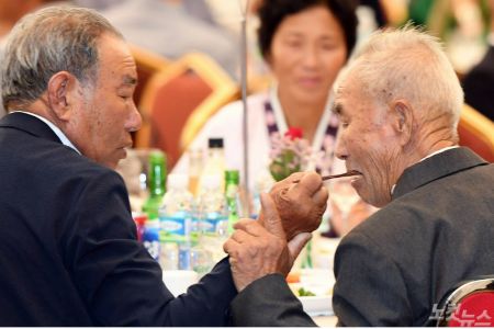객실에서 북측 형(한상이·86)을 기다리던 동생 한상엽(85) 할아버지는 "제사를 지냈다는 얘기를 했더니 형이 웃으면서 산 사람 제사를 지내줬으니 오래 살겠다'는 말을 했다"고 소개했다.