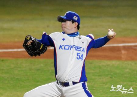 26일(현지시간) 오후 인도네시아 자카르타 겔로라 붕 카르노(GBK) 야구장에서 열린 2018 자카르타·팔렘방 아시안게임 야구 조별리그 B조 1차전 대한민국과 대만의 경기에서 1회초 양현종이 역투를 하고 있다.