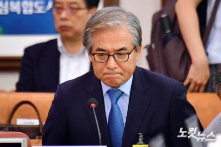 김효준 BMW코리아 회장이 28일 오전 국회에서 열린 국토교통위원회 BMW 차량 화재 관련 공청회에 출석해 굳은 표정을 짓고 있다.