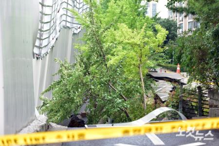 31일 새벽 서울 금천구 가산동의 한 아파트 단지 인근 도로에 싱크홀(땅꺼짐) 현상이 발생해 도로가 갈라져 있다. 사고는 오늘 새벽 4시 40분 경 인근 고사장 축대가 무너져 내리면서 지반이 내려앉아 아파트 주민 150여명이 긴급 대피했다. 소방당국에 따르면 최근 내린 강한 비에 지반이 약해지면서 아파트 인근 공사장과 도로에 가로 30m, 세로 10m, 깊이 6m의 싱크홀이 발생한 것으로 추정하고 있다.