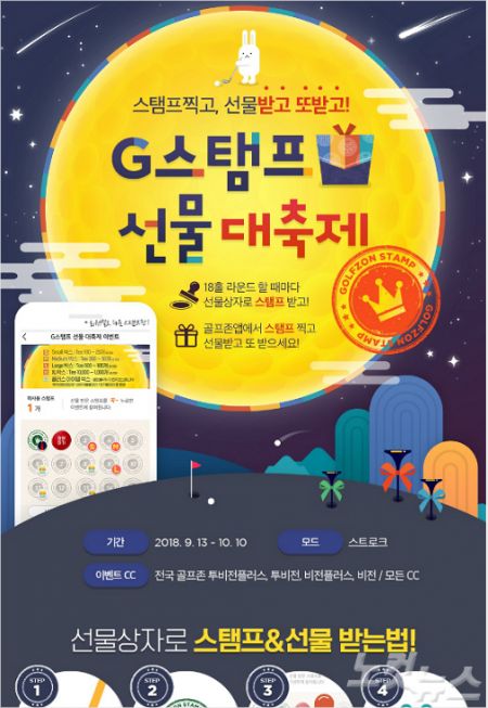 ㈜골프존(대표이사 박기원)은 고객 감사의 마음을 담아 13일부터 10월 10일까지 푸짐한 선물을 지급하는 'G스탬프 선물 대축제' 이벤트를 개최한다고 밝혔다.