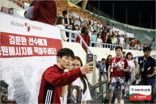 경기 종료 후 팬들과 사진을 찍는 김문환. (사진=한국프로축구연맹 제공)