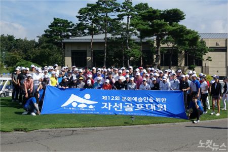 (재)골프존문화재단(이사장 김영찬)이 17일 경기도 안성에 위치한 골프존카운티 안성 Q에서 ‘제12회 문화예술인을 위한 자선 골프 대회’를 개최했다.
