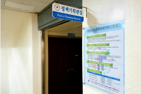 경기교육청 이한복 정책기획관의 취임을 둘러싸고 '회전문 인사'라는 뒷말이 끊이지 않고 있다. 사진은 경기교육청 정책기획관실 입구. (사진=신병근 기자)