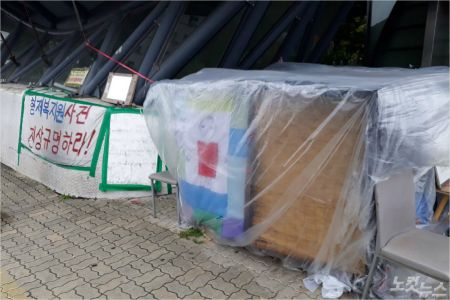 형제복지원 생존자들은 국회 앞에서 1년 가까이 노숙 농성을 벌이고 있다. 형제복지원 사건의 진상규명을 촉구하기 위해서다. 형제복지원 관련 특별법은 아직 국회에 계류중이다. (부산 CBS)