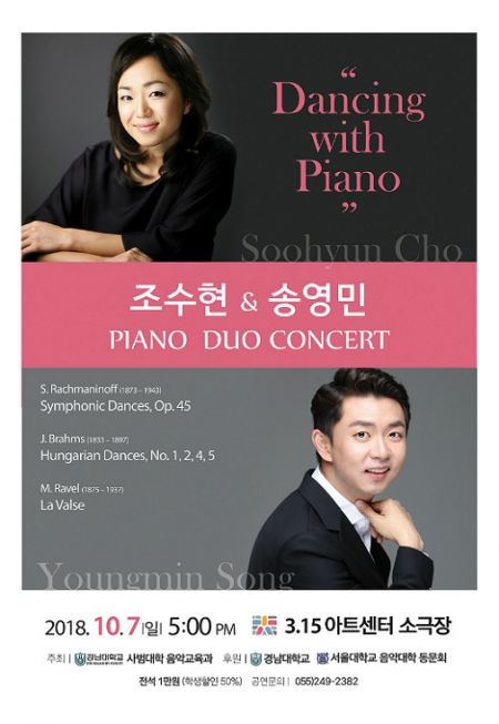 경남대학교 음악교육과 조수현 교수와 피아니스트 송영민의 피아노 듀오콘서트가 오는 10월 7일 오후 5시 마산 3.15 아트센터 소극장에서 열린다.