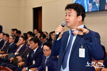 백종원 더본코리아 대표가 12일 오후 국회에서 열린 산업통상자원중소벤처기업위원회 국정감사에 참고인 신분으로 출석해 의원들의 질의에 답변을 하고 있다.