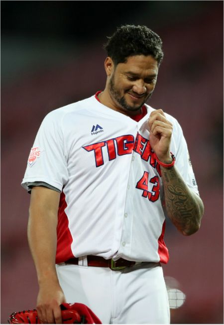 '나도 늙었나?' KIA 헥터 노에시는 2016년 15승으로 성공적인 KBO 리그 데뷔 시즌 이후 지난해 20승 고지를 밟았지만 올해는 11승에 머물러 하락세를 보였다.(사진=KIA)