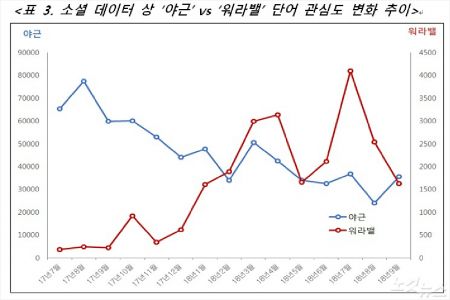 또 '야근'에 대한 언급량은 줄어든 반면, '워라밸'에 대한 언급량은 증가하고 있는 것으로 나타났다.