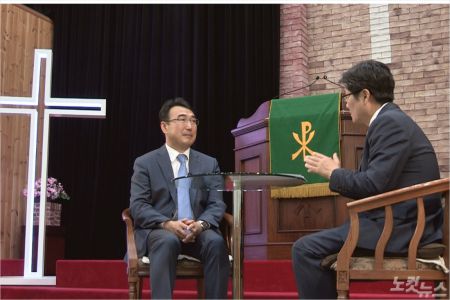 전 세계교회협의회(WCC) 세계선교와전도위원회 국장인 금주섭 목사(장신대 특임교수,좌측)가 CBS와 인터뷰를 하고 있는 모습.