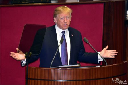 트럼프 대통령. 윤창원 기자/자료사진미국 역대 대통령 가운데 트럼프 대통령의 국회 연설은 5번째로 1993년 빌 클린턴 대통령에 이어 24년 만이다. 윤창원기자