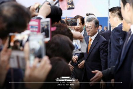 문 대통령은 "저는 대통령으로서 분명히 약속하는데 더 이상 공권력의 무리한 집행으로 국민과 경찰이 함께 피해자가 되는 일은 없을 것"이라며 "경찰관 한 명 한 명이 국민이 내민 손을 굳게 잡을 때 민주주의와 평화는 더 굳건해질 것"이라고 말했다.
