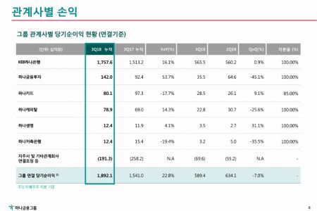 이어 하나금융투자 1420억원, 하나카드 801억원, 하나캐피탈 789억원 등의 3분기 누적 순이익을 기록했다.