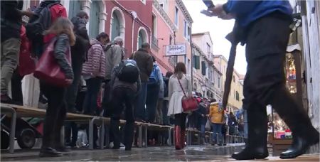 베네치아에서는 허리까지 물에 잠긴 채 걷는 관광객들을 볼 수 있으며, 산 마르코 광장은 통행이 차단됐다.
