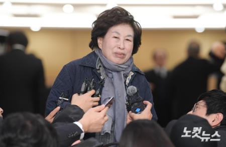 배우 전원주가 5일 오후 서울 송파구 풍납동 서울아산병원 장례식장에 마련된 고 신성일 씨의 빈소에서 조문한 후 인터뷰를 하고 있다.