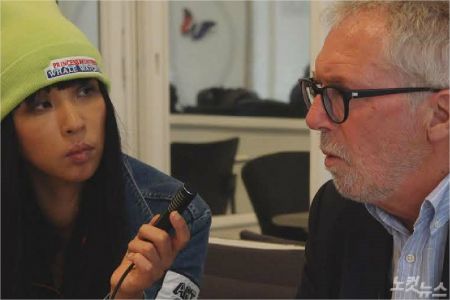 정혜윤 피디(왼쪽)가 파리 테러 유족 모임 ‘11 13 15 진실과 우애’ 필리프 뒤뻬롱 회장을 인터뷰하고 있다. 뒤뻬롱 회장은 2015년 11월 13일 발생한 파리 테러로 아들을 잃었다.