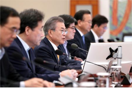 문 대통령은 이날 청와대에서 국무회의를 주재한 자리에서 "자동차는 수출감소와 구조조정 등 어려움을 겪으며 생산이 전년대비 감소하다가 8월부터 10월까지 다시 증가하기 시작했다. 조선 분야도 10월까지 수주실적이 지난해 같은기간보다 71% 늘어 세계시장 점유률이 44%를 차지하는 등 세계 1위를 탈환했다"며 이같이 말했다.