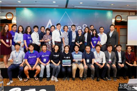 대구대 창업지원단 이노캠퍼스 액셀러레이팅 사업의 지원을 받은 창업기업들이 2018 이노캠퍼스 엑셀러레이팅 Advance 8 in saigon에서 투자유치 발표를 마치고 기념사진을 촬영하고 있다.