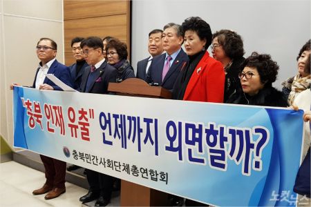 충북 민간사회단체총연합회는 27일 기자회견을 열고 충북 학생들의 낮은 서울대 진학률과 정부 고위 공직자 중 충북 출신 인사의 낮은 비중 등을 언급한 뒤 "인재 육성을 위해 명문고를 설치해야 한다"고 주장했다.