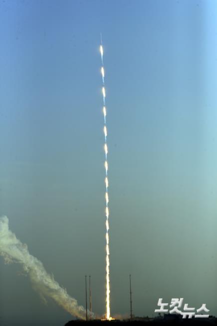 28일 오후 전남 고흥군 봉래면 나로우주센터에서 한국형 발사체 누리호 엔진의 시험발사체가 발사되고 있다. 이번 발사체는 2021년 발사될 '누리호'에 쓰일 75톤급 액체엔진의 성능을 검증하기 위한 것으로 길이 25.8m, 최대지름 2.6m, 무게 52.1톤의 시험용 발사체이다. (사진공동취재단)