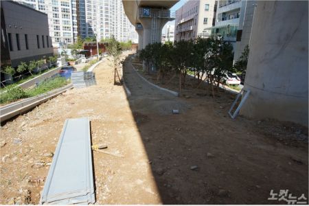 부산 동해선 그린라인파크 공사 현장에 저질 골재가 사용됐다가 재시공된 사실이 드러난 가운데 순환골재 사용 권장 방침에 대한 각종 지적과 불만이 이어지고 있다. (사진=송호재 기자)