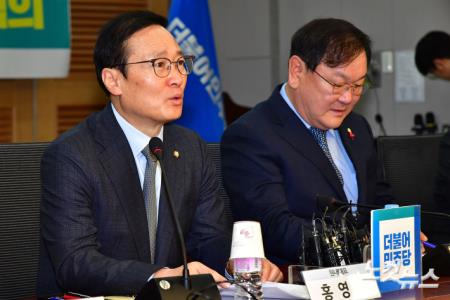 더불어민주당 홍영표 원내대표가 20일 오전 국회 의원회관에서 열린 자영업 성장.혁신 종합대책 당.정.업계 협의에서 모두발언을 하고 있다.